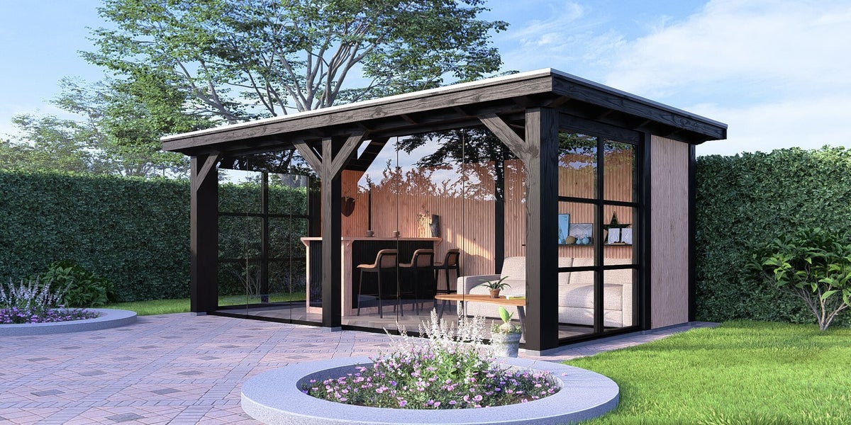 Daarnaast kan buitenverblijf Barcelona worden geleverd met steellook glaswanden en -deuren, voor extra charme.