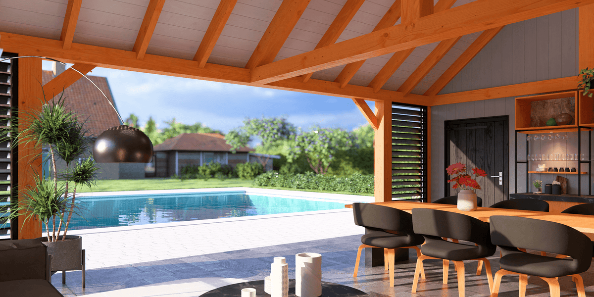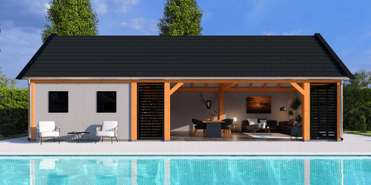 Buitenverblijf Monaco XXL creëert met zijn grote dakhelling een heldere en luchtige leefruimte op de bovenverdieping, perfect voor een vide of extra verdieping. Dit model is voorzien van staanders en ringbalken van 190×190 mm, wat zorgt voor extra diepte ten opzichte van de reguliere Monaco. Het strakke en onderscheidende ontwerp sluit naadloos aan bij een landelijke of bosrijke omgeving, waardoor het bijzonder geschikt is voor een poolhouse. Buitenverblijf Monaco XXL biedt niet alleen functionele voordelen, maar is ook een elegante en stijlvolle aanvulling op uw tuin.